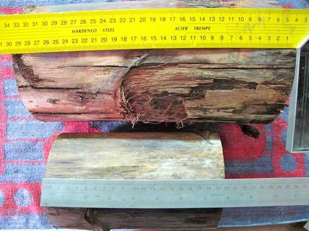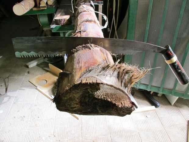 Encontrar el punto en la madera donde el diámetro es de aproximadamente 12cm y marque con un lápiz. La madera en lugar de la abrazadera. Corte sobre la marca a 90 * respecto a la longitud de la madera utilizando una madera de la sierra. Usé una sierra japonesa Tire porque el corte es muy preciso y liso. Guardar el trozo. Compruebe su corte para asegurarse de que el diámetro es de unos 12cm. Esto va a ser la sección para el amplificador del altavoz.