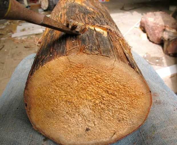 Use un formón para quitar la corteza escamosa de ambas piezas de madera de agave. Quitar sólo fibra suficiente tan floja no hará que las astillas. Mucha de la belleza viene de esas fibras tan trabajos cautelosamente.