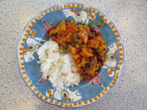 esto es un giro fresco y simple en la cocina con una base de tomate, lentejas y especias marroquíes. En esta versión vegetariana, calabaza rellena el papel de la carne. Es un guiso abundante, sano y picante para proporcionar calor y energía en invi
