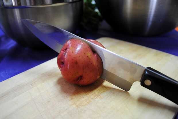 Primero poner agua a hervir y cortar las papas. Una vez que el agua esté hirviendo echar las patatas y dejamos cocer hasta licitación.