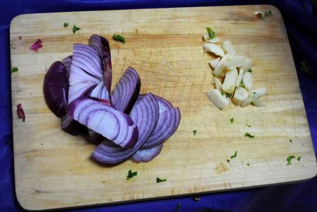 Paso 3: Cortar la col rizada, cebolla y ajo