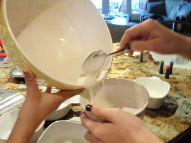 Hola! Aquí es un proyecto de mi hijo y lo hice en febrero para su clase. Los niños estaban encantados con los resultados!Paso 1: preparación Utiliza dos cajas de mezcla para pastel blanco y preparado según las instrucciones. Usted podría hacer su pro