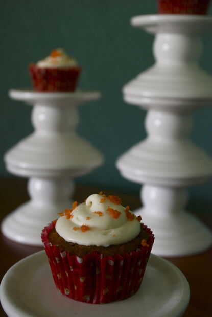 Vuelta a 350 grados. Lino de la tierra se mezclan con agua y deja reposar durante cinco minutos. Mezclar las semillas de aceite, el azúcar y el lino. Luego agregar la harina, sal, canela, polvo de hornear y bicarbonato de sodio. Después de que los ingredientes están bien mezclados añadir las zanahorias picadas. Línea de un pan de Magdalena con sus forros más lindos y rocíe con spray vegetal. Llene cada dos tercios del camino completo. Lugar en más de 15-20 minutos.