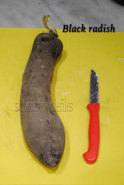 Y el ingrediente especial en esta hermosa ensalada rallada es: sí,... Rábano negro!