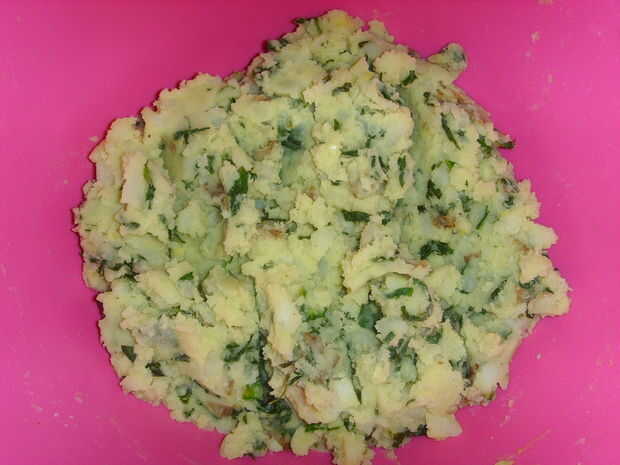 Mezclar todo en un bol, (incluyendo la levadura nutricional si tener a la mano, si no no te preocupes) y se deja reposar hasta que esté lo suficientemente frío como para que toque sin quemarse las manos. Debería verse como fotos 3 y 4 por debajo.
