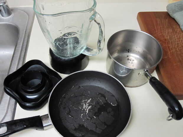 Lave el sartén y la licuadora con agua y jabón, y que debería venir todos limpiar muy rápidamente.