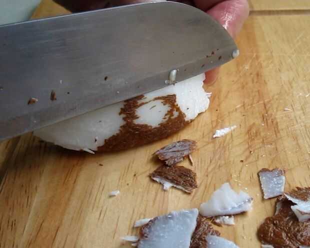 3. Quite la piel de la pulpa de coco (opcional, leer Nota abajo)