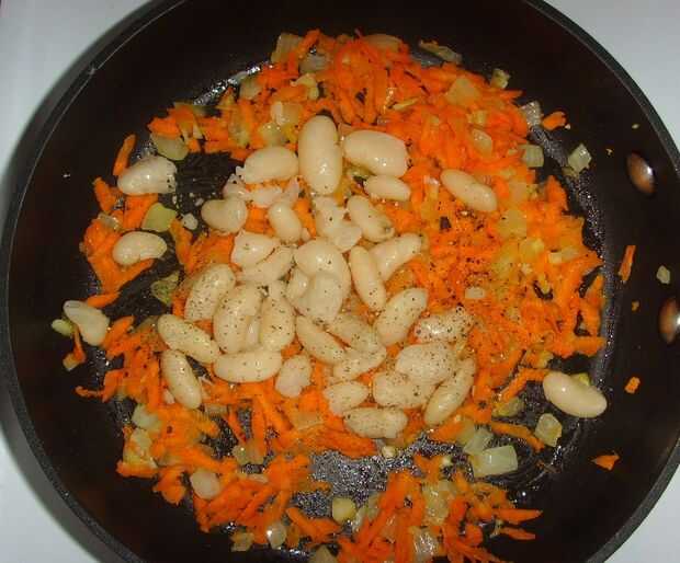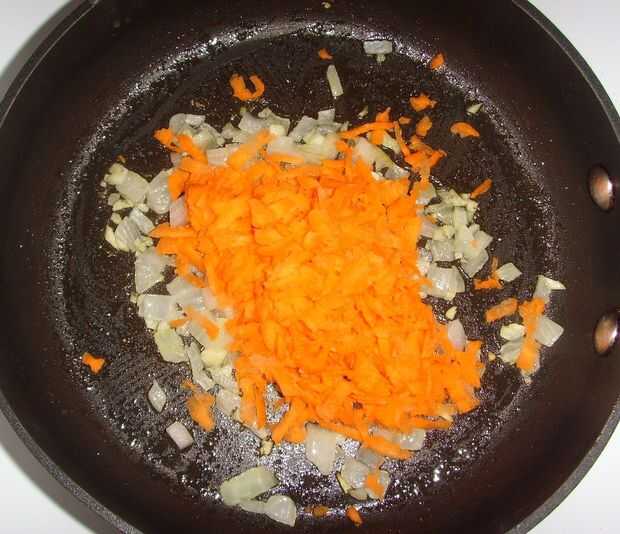 -Cuando el ajo y la cebolla estén transparentes, añadir un poco de sal, luego agregar las zanahorias ralladas. Cocinar por otro minuto.