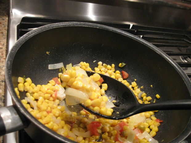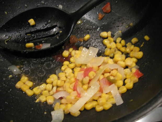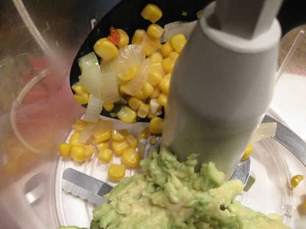 Vegetariana aguacate y sopa de maíz (4 / 7 paso)