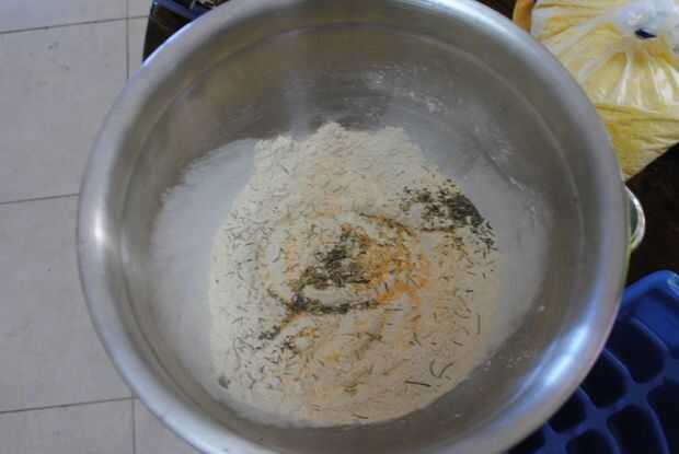 Mezclar las especias y el gluten de trigo hasta que se mezcle bien. Añadir más especias que quieras.