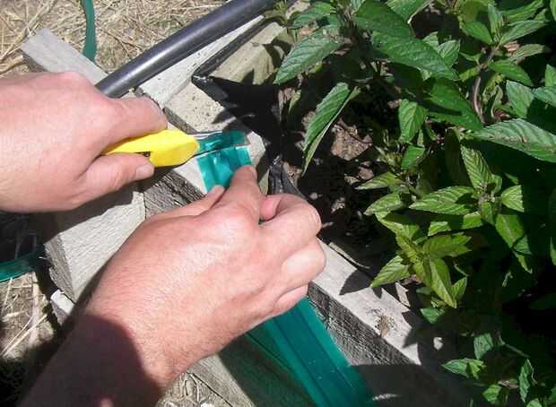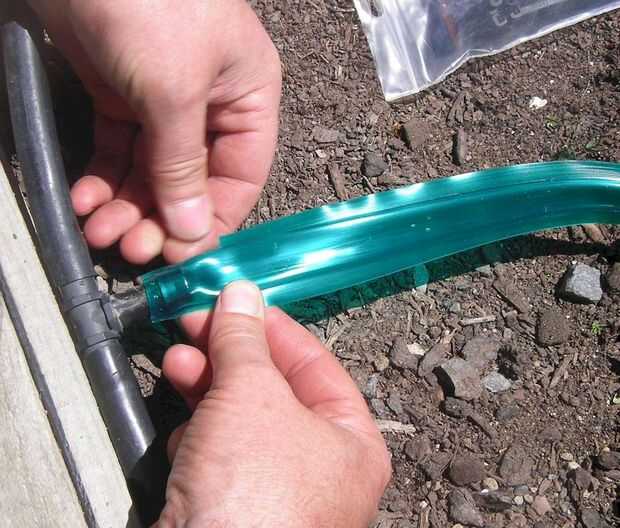 • Medida de la manguera de irrigación a lo largo de su fila jardín dejando una pequeña cantidad extra (unos 10 cm o 2)