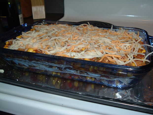 Fui a un restaurante vegetariano y pagó $8 por un pedazo de lo que llama Lasagna mexicana. Me sentí engañado. Esta cosa era algo podía hacer, así que me di cuenta de lo que fue en él y lo hice. Ahora es un alimento común de la característica en nuest