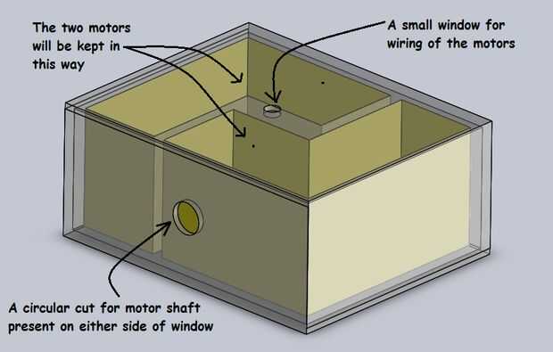 La tercera foto muestra la vista superior de cómo se colocarán los motores y los ejes en la carcasa.
