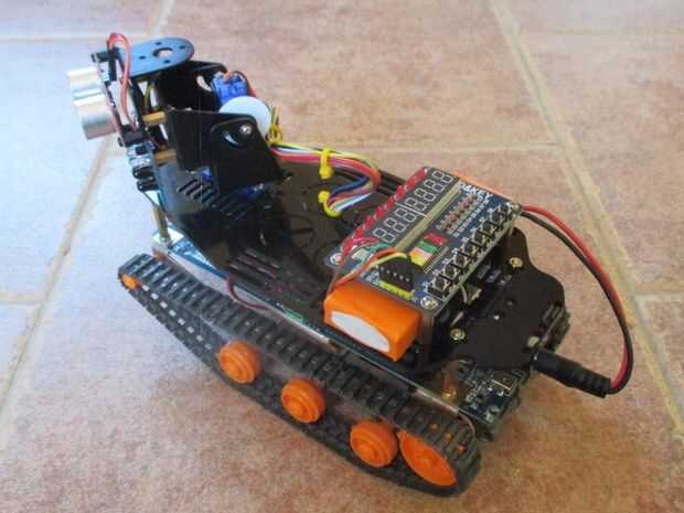 En la foto es mi DFRobotShop Rover V2 con escudo de sensor y la placa de expansión.