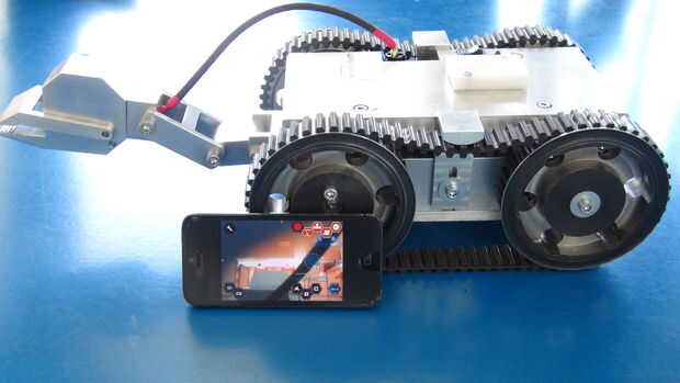 Se controla con la aplicación WIRC que conecta con el Dension a través de wifi, que envía señales a la Thumper salvaje. Estas señales controla el motor y el LED. El motor servo se conecta directamente al Dension. El vehículo se utilizará más adelante por la empresa Cofely para montar en conductos e inspeccionar cables o incluso tomar algo con la pinza en lugares inalcanzables.