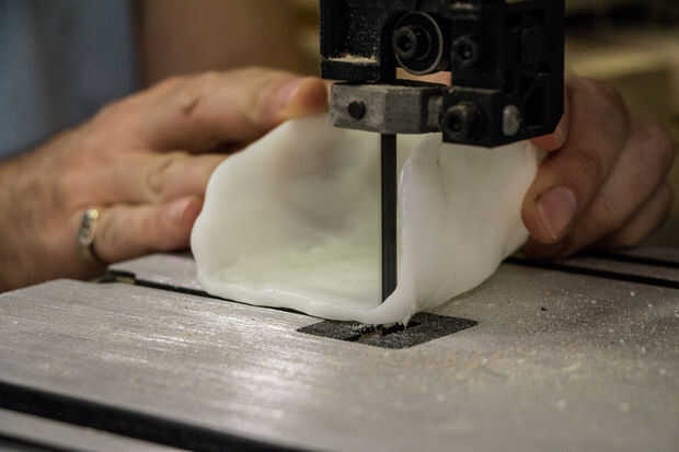Cuando esté satisfecho con la forma de los soportes, los sumerja en agua fría (hielo incluso). Esto acelera el endurecimiento. Después de que los soportes son difíciles, puede recortar los bordes (se muestra aquí con una sierra) y liso, demasiado.