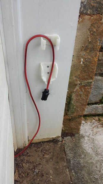 Poner la parte inferior alrededor de la base de donde sale el cable y la superior 2/3 de la manera para arriba. Coloque el transformador sobre la ubicación de montaje deseada con los soportes colocados. Marque el lugar donde los bordes de soporte golpeó la pared.