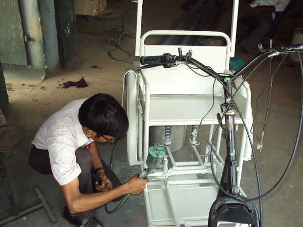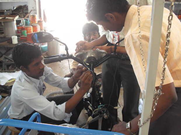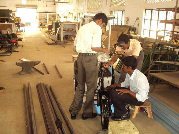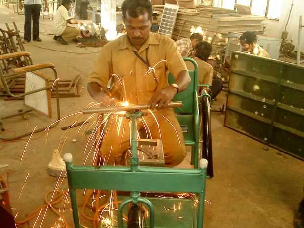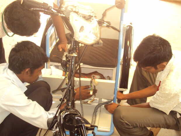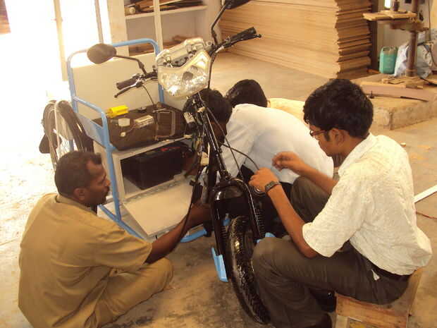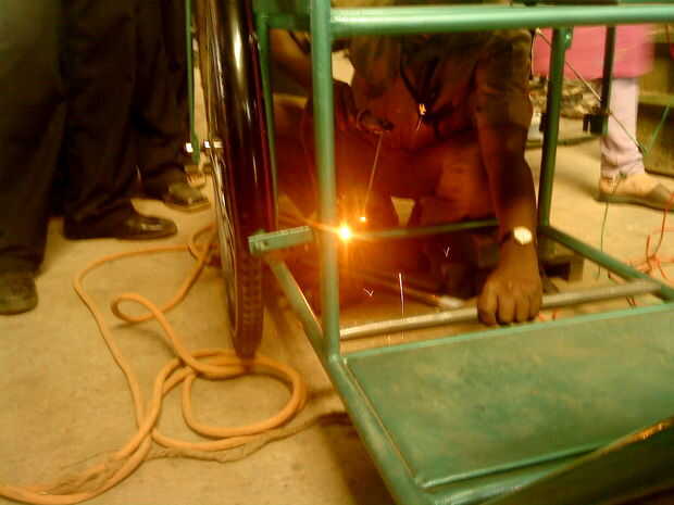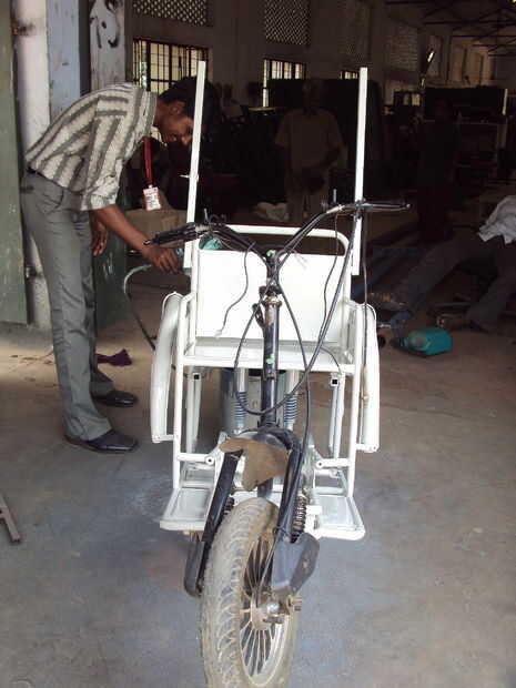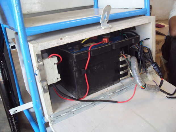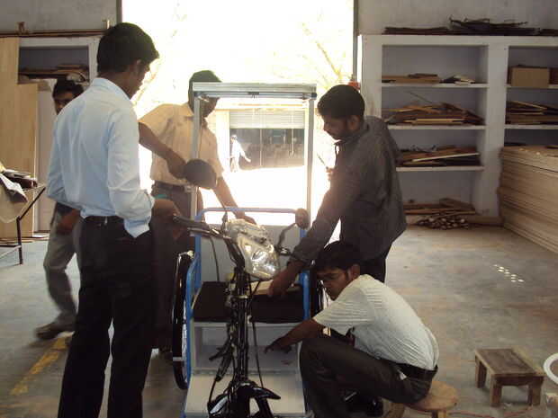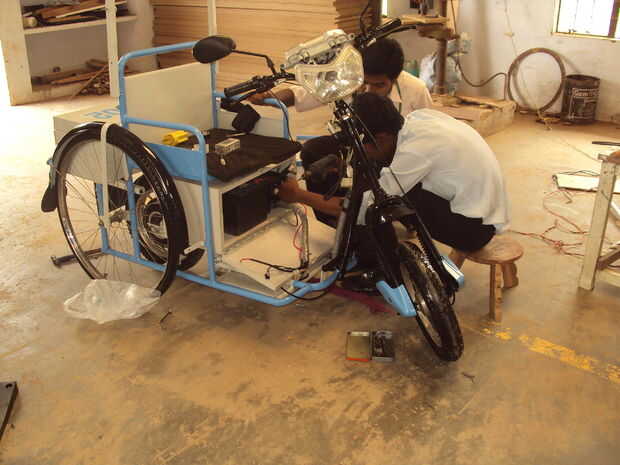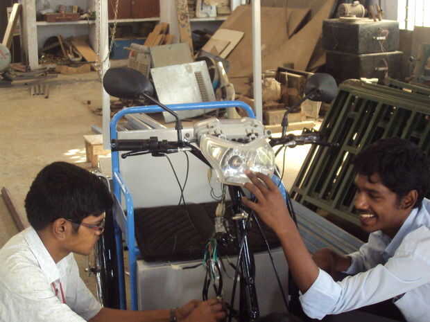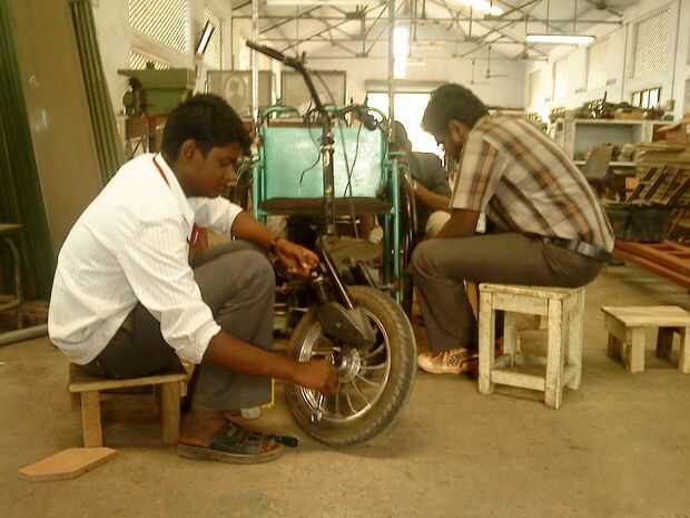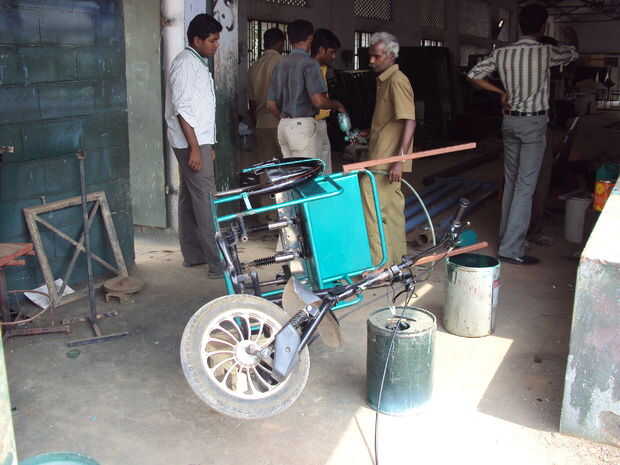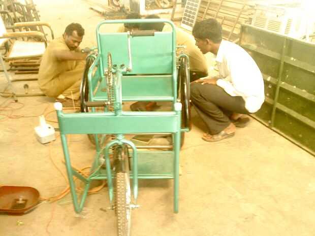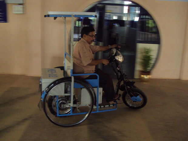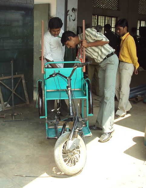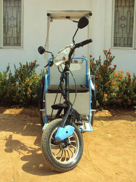 Se trata de vehículo solar batería recargable funcionada para personas con capacidades diferentes. Es un vehículo con un motor del eje de rueda trasera. Reduce el esfuerzo físico de personas con capacidades diferentes y diversas operaciones tales como variaciones de velocidad, potencia de la fuente motor controlado usando el motor BLDC controlador. Este vehículo puede funcionar a velocidad variable utilizando válvula reguladora del apretón de torcedura. Este vehículo lleva una carga máxima de 120kg, acelera rápidamente a unos 29 kmph(max)
