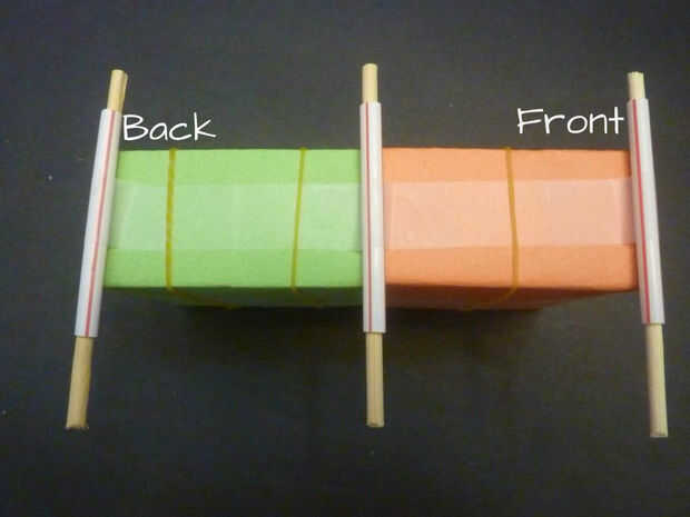 • Colocar gomas elásticas en las cajas. Es más difícil poner bandas de goma después de que las ruedas se unen al eje.