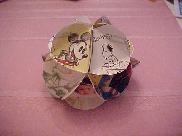 Vi una foto de una pelota de papel en parpadeo como esto.De lo que he encontrado, esto fue hecha por Phillip Chapman-Bell. Si esto es incorrecto por favor hágamelo saber.La forma de pelota de fútbol está hecha de pentágonos y hexágonos.Este utiliza d
