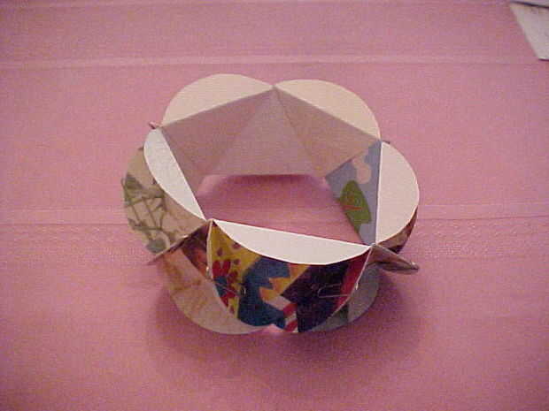 Vi una foto de una pelota de papel en parpadeo como esto.De lo que he encontrado, esto fue hecha por Phillip Chapman-Bell. Si esto es incorrecto por favor hágamelo saber.La forma de pelota de fútbol está hecha de pentágonos y hexágonos.Este utiliza d