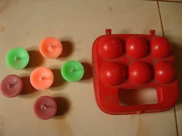 - Derretir la cera a baño María, añadir colores y vierta en los hemisferios.