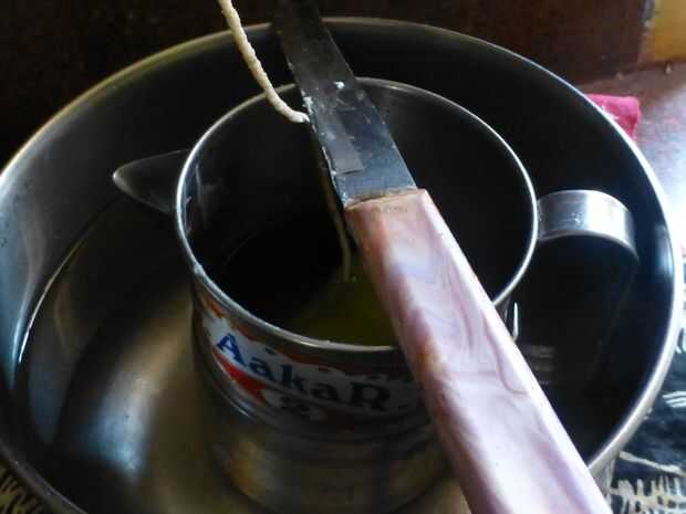 - Cuando la superficie de la vela es poco firme, insertar las mechas empapada en cera.