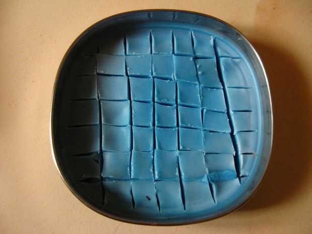 - Permita que la cera se enfríe por lo que es firme pero puede ser cortado en pedazos.