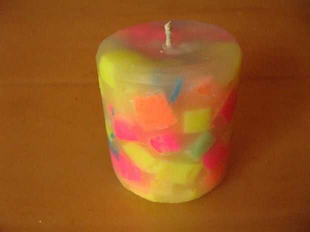 - Retire del molde. Ahora tienes una vela pedazo colorido.