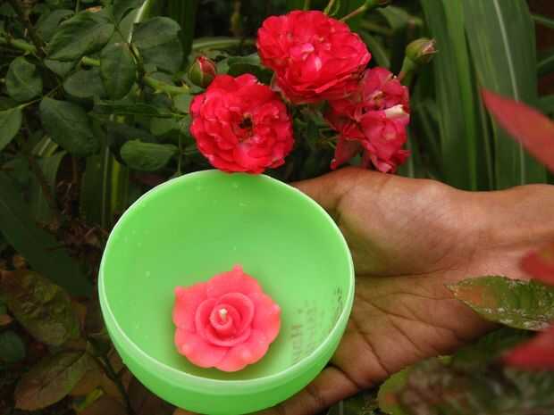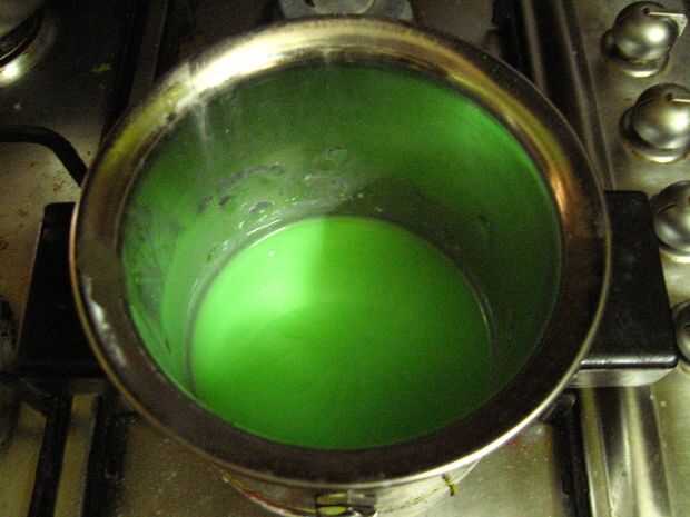 - Añadir el color deseado a la cera derretida. Aquí, he añadido color verde claro.