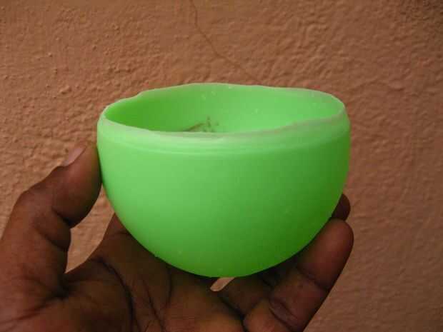 - Mantenga la capa de cera con agua corriente y pinchar el globo con una aguja. Tenga cuidado de no para dejar caer a la luminaria.