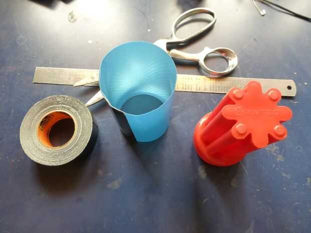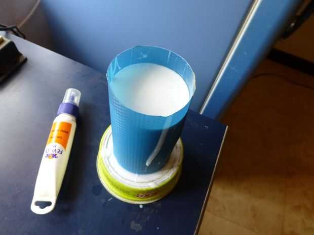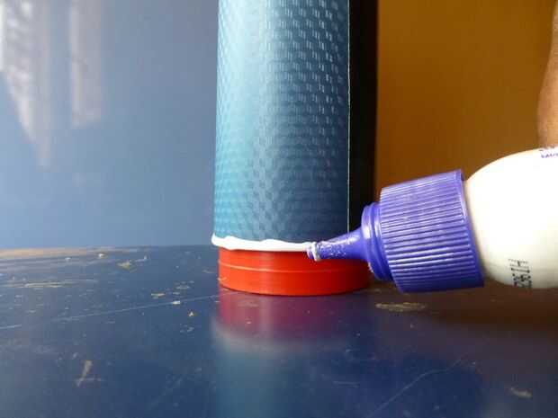 - Coloque la lámina de plástico redondeada sobre el objeto y sellar el hueco en la parte inferior con pegamento.
