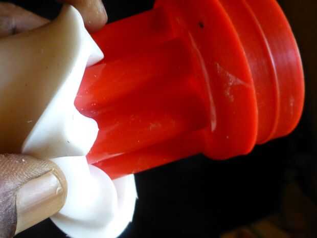 - Después del ajuste apropiado, retire la cubierta exterior y saque el molde acabado del objeto. Usted puede rodar y retire el molde de silicona, no hay problema. Es muy flexible.