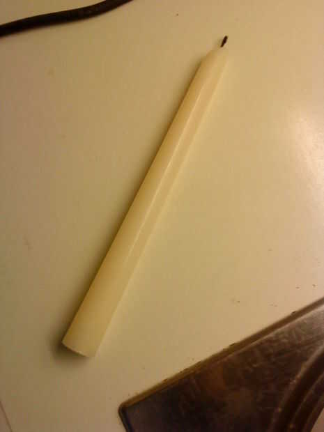 hace un tiempo leí en LoFi Haz que usted puede "escuchar" a una vela vacilante electrónica conectando un altavoz para el LED. Me decidí a probar esto, así que salió y compró dos paquetes de velas parpadeantes electrónicos. Sólo colocar un altavo