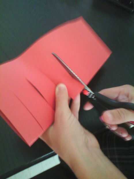 cortan las rajas del lado doblado alrededor de una pulgada con aproximadamente una pulgada de papel izquierda en la parte superior