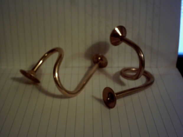 En una bolsa encontrado algunos ornamentos de la Navidad, en este bolso algunas que eran cornetas de latón. Eran de esos que son solo pequeños tubos de latón con un caño soldado en los extremos, cornetas no reales.