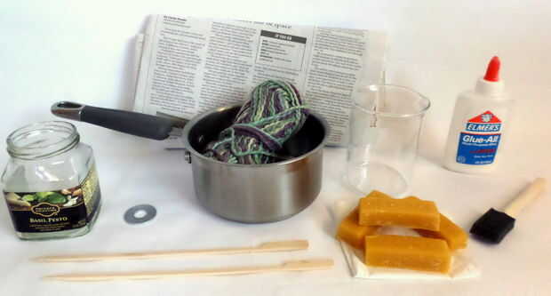 - Frasco de vidrio con lados cuadrados. Tuve un pesto de albahaca vacío del tarro que funcionó a la perfección para esto (véase la foto de arriba).