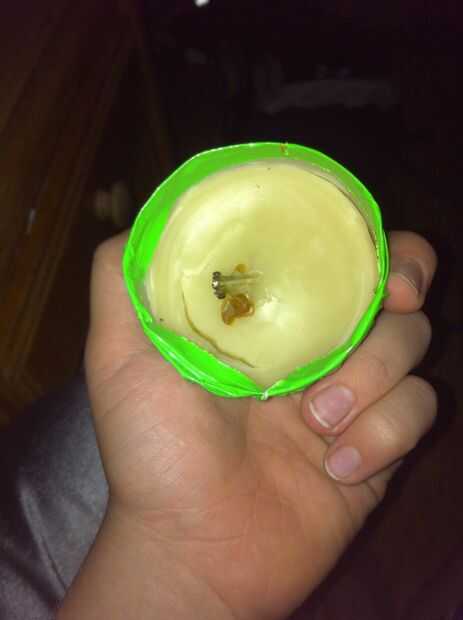 hice una mecha de una pluma de pollo. Apesta cuando se quema. Le recomiendo usar algún tipo de cuerda o cadena. Pero como lo hice fue cuando la cera estaba caliente tomé mi pluma y sumergido en la cera y llevó a cabo entonces tienes una mecha!!!! Cadena de lo mismo.