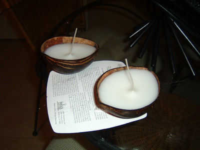 TriCoconut PortavelasPaso 1: montaje Necesita 3 cáscaras de coco medio y algunos cables de Unión.-Haga dos orificios en cada shell como se muestra en foto-Únete cáscaras con alambreNotas finales:Funciona muy bien con luces de té o cualquier Pilar vel