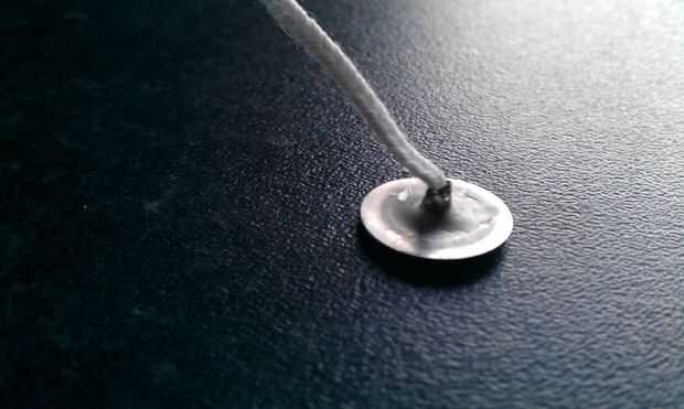 Coloque la mecha en el poco metálico en la parte inferior de una luz de té, he usado un par de tijeras para exprimirlo aparte, quite la mecha antiguo (primero utilicé la luz de té) e introduzca la nueva. Parte superior Consejo: Mantenga la mecha tan larga como sea posible, facilita la posición mientras que la cera se establece después