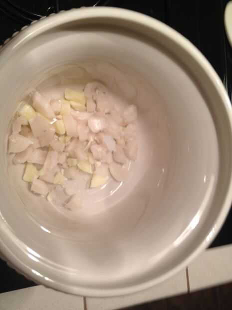 Cortar la cera en trozos pequeños y colocarlos sobre la placa. Calentar a baño María por unos minutos y poner la cera en baño María.
