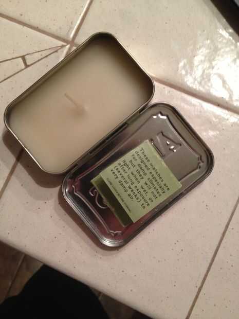 vela de agua contenida del pequeño apretado con los fósforos. Deslizarse en su bolsillo o bolso. Puede ser útil para la emergencia.Paso 1: Montar fuentes Reciclado mis contenedores de tabaco metálicas estancas de maridos. Tienen Junta de goma en la t