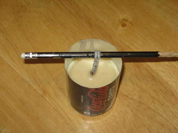 Cuando la grasa esté fría y congela Retire el lápiz y recortar el poder a sobre 1/4 de una pulgada por encima de la parte superior de la grasa.