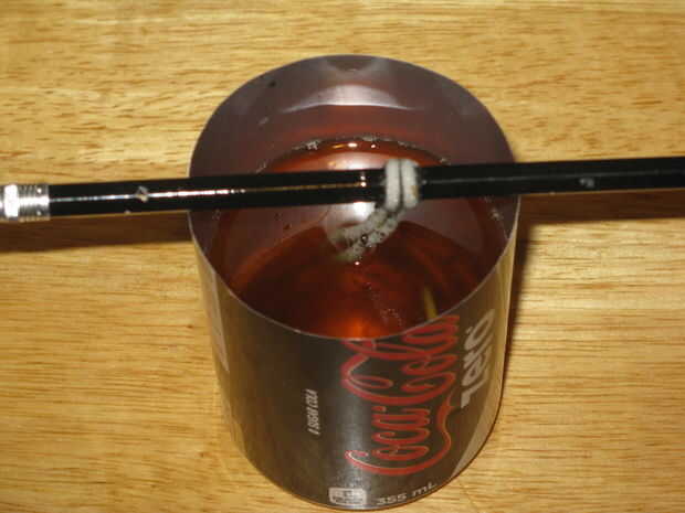 Cortar la parte superior del pop puede y suspender la cadena en el centro de la lata.
