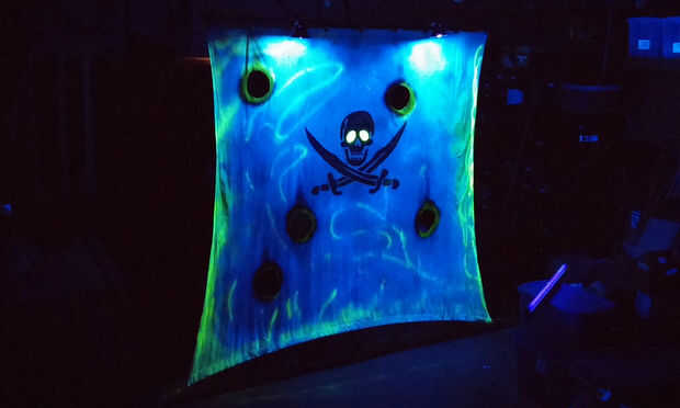 Este Instructable es para una vela de "Los piratas del Caribe" que se izó en el asta de la bandera en el patio para mejorar el resto de nuestras decoraciones de Halloween con temática de piratas (ver mi Instructables otros para obtener más información). Esta vela está inspirada por el frente el paseo de "Los piratas del Caribe" en Walt Disney World.