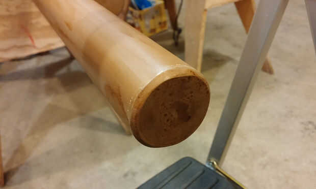 Había cortado el tubo de PVC a la medida, conectar los extremos con algunos ABS plana de mi papelera de chatarra y había chaflanado de los bordes en la lijadora de banda. Luego poner un tinte artificial acabado en PVC con algún betún marrón y recubrimiento de claro para protegerlo. (Usted puede encontrar una serie de videos sobre cómo hacer esto en Youtube. Al parecer, los entusiastas del tiro con arco comprar arcos de PVC comúnmente disponibles y utilizan esta técnica para que se vean como la madera.)