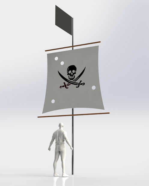 La vela fue bastante sencilla construir y no requiere de complicadas habilidades o equipo. Mi bandera es 20' de altura y fabricado en aluminio, así que sabía que no quería poner nada demasiado pesada para arriba allí. Decidí hacer los travesaños de tubo de riego de PVC ya que son baratos y ligeros. Yo estaba limitado por la longitud del tubo de PVC de 10' impulsó el diseño y el tamaño de la vela. He creado un modelo 3D muy rápido de la vela en Solidworks para tener una idea de la escala.