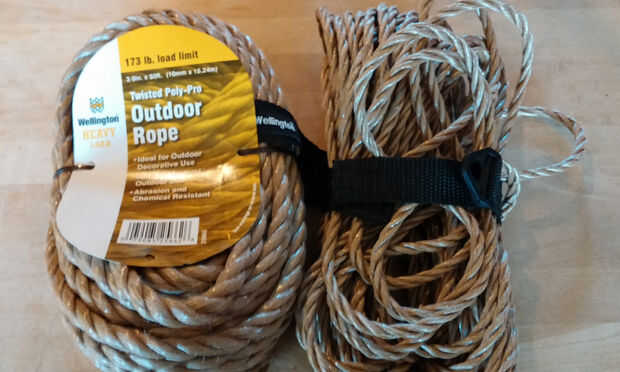 e inferior con tornillos de metal en el tubo de PVC. Luego envuelve los extremos con la cuerda poly para ocultar los tornillos.