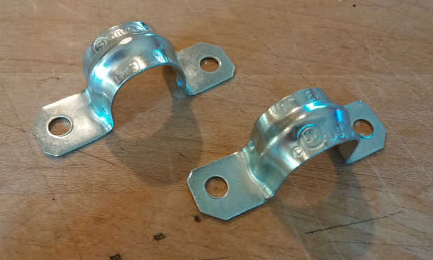 Para el montaje, encontré cierta cuerda de polietileno resistente a la intemperie imita la cuerda del sisal de estilo antiguo y algunas abrazaderas de conducto. He pintado las pinzas con pintura de bronce martillada y conectados en los extremos de los brazos en la parte superior
