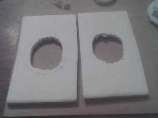 Estas son dos piezas de desecho de cartón pluma. Primero corte un orificio para encajar la parte inferior de la vela y los dos pegan.